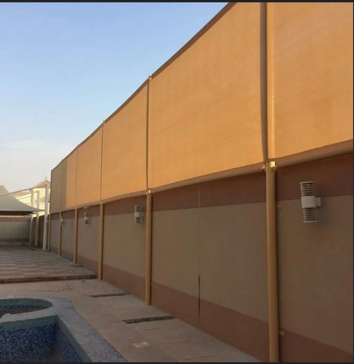 لا تقل السواتر أهمية عن المظلات، فهي عنصر أساسي لتوفير الخصوصية والحماية من الرياح والغبار.