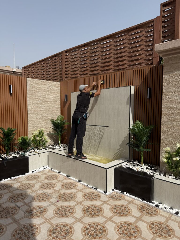 4. الديكورات الخارجية والشلالات: ترطيب